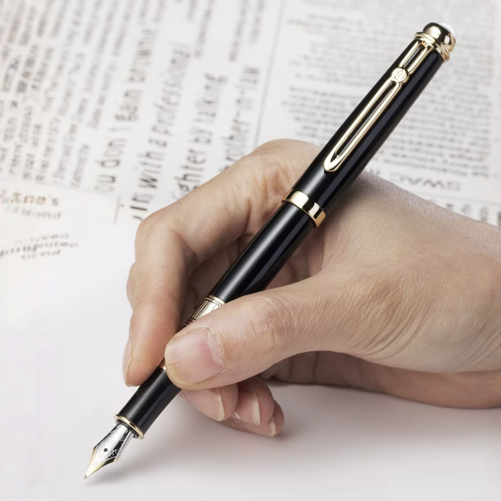 Wysokiej jakości metalowe pióro wieczne z tłoczkiem do atramentu – perłowy akcent i królewska elegancja