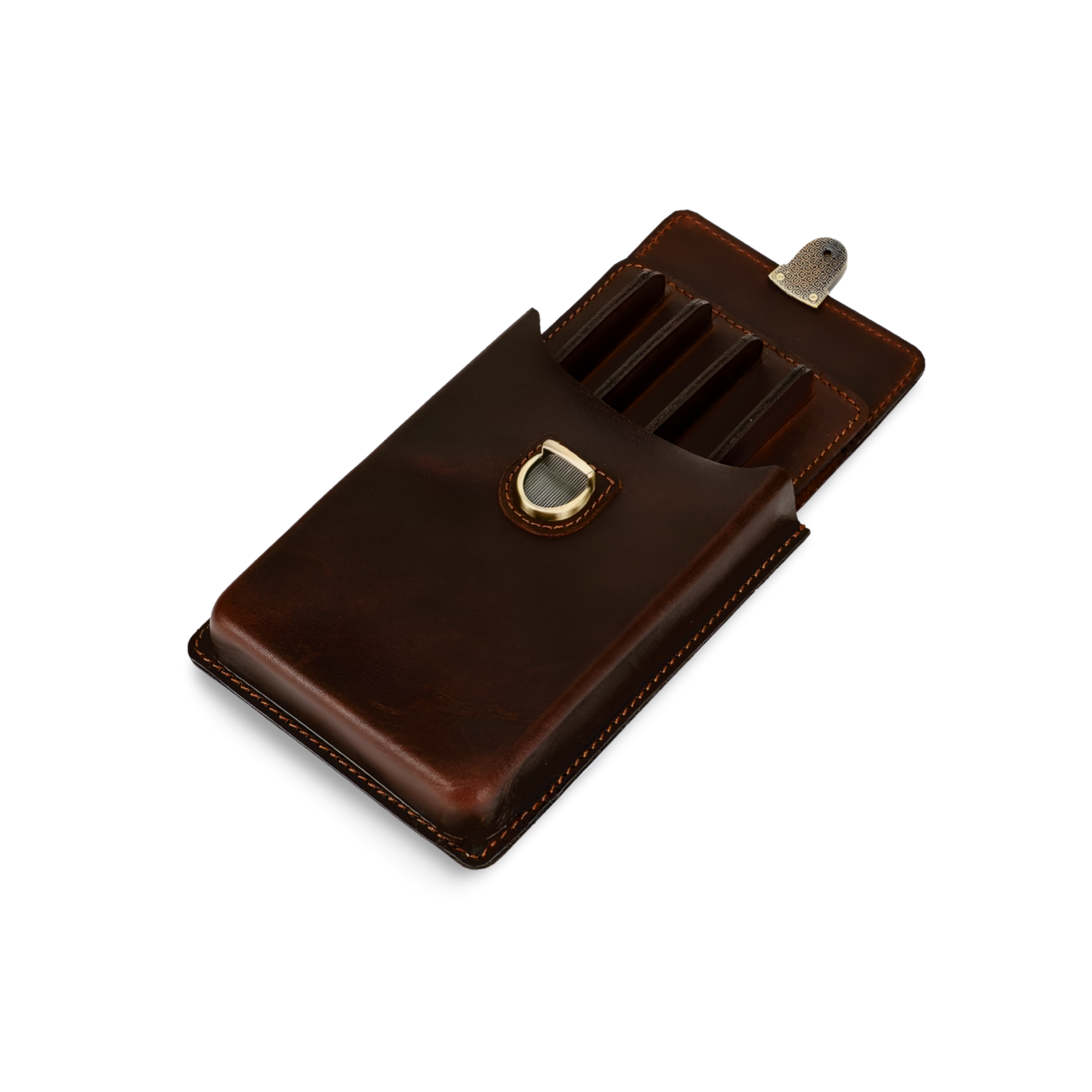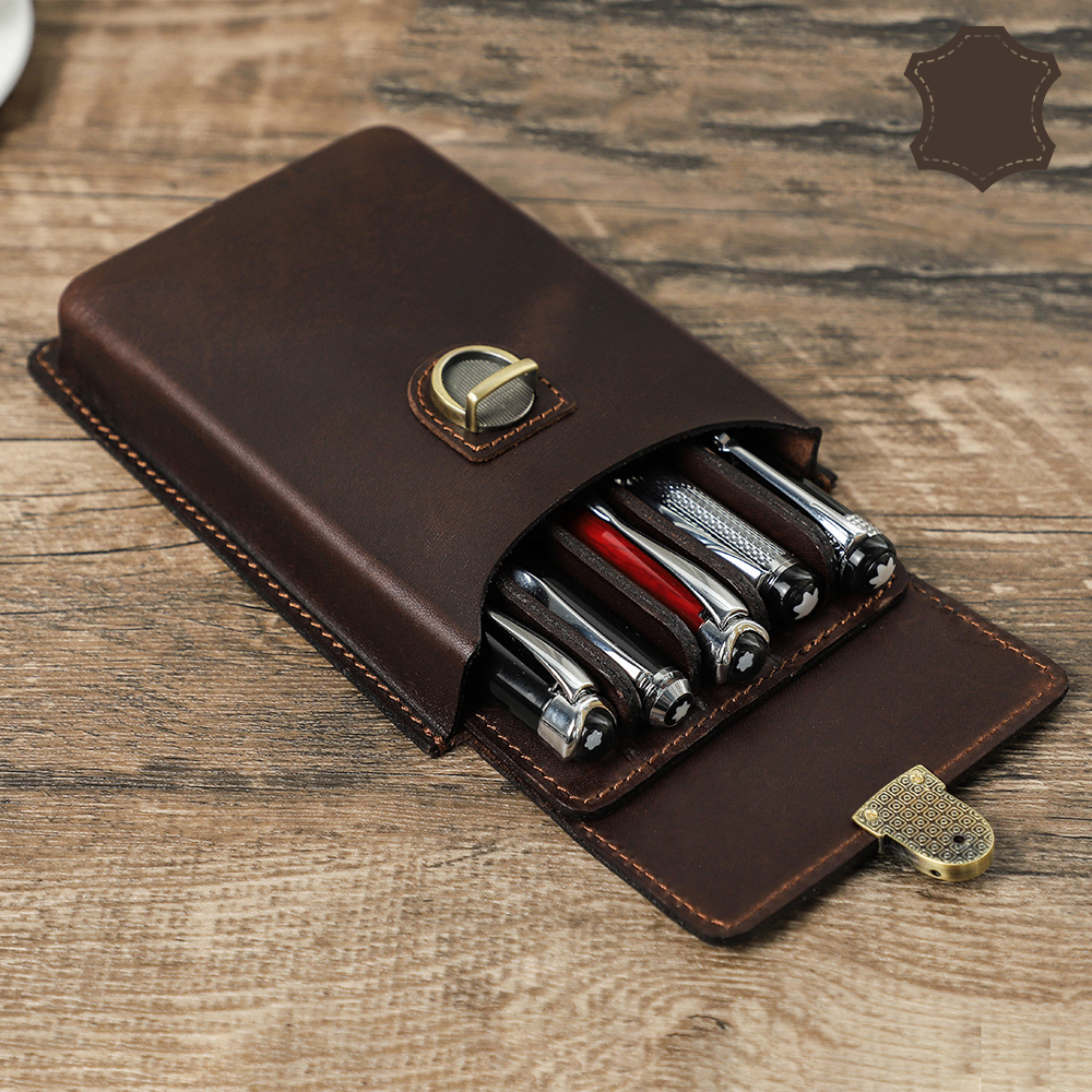 Ekskluzywne etui na pięć piór – prawdziwa skóra i klasyczne zamknięcie na klamrę