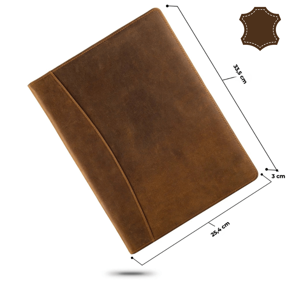 Folder konferencyjny A4 wykonany prawdziwej skóry bydlęcej woskowanej tzw. skóry vintage – idealny na spotkania biznesowe, konferencje, szkolenia czy codzienne użytkowanie biurowe.