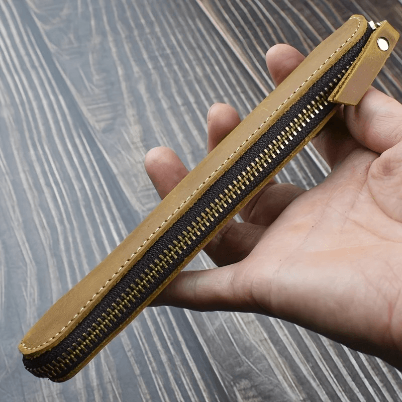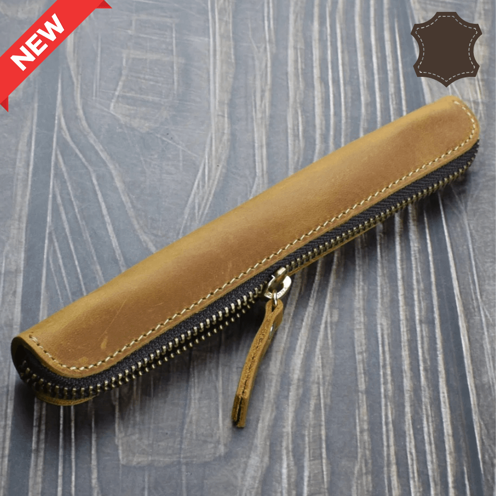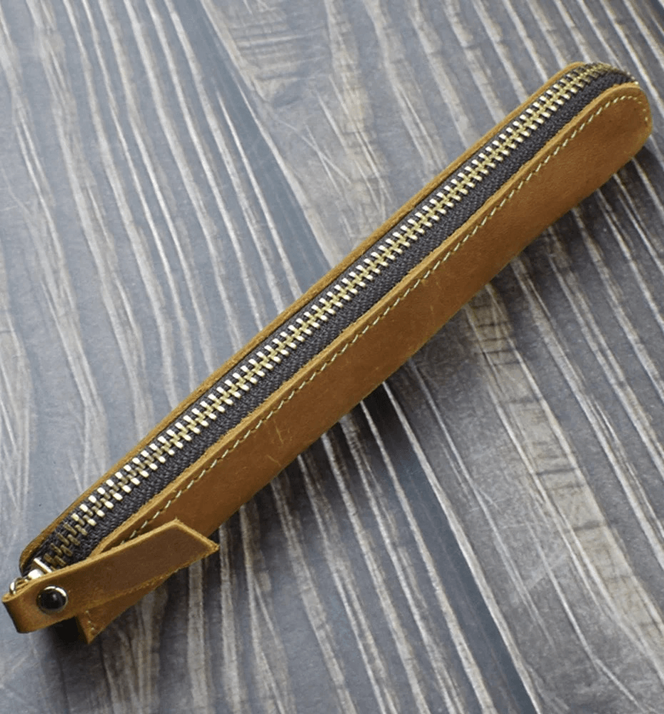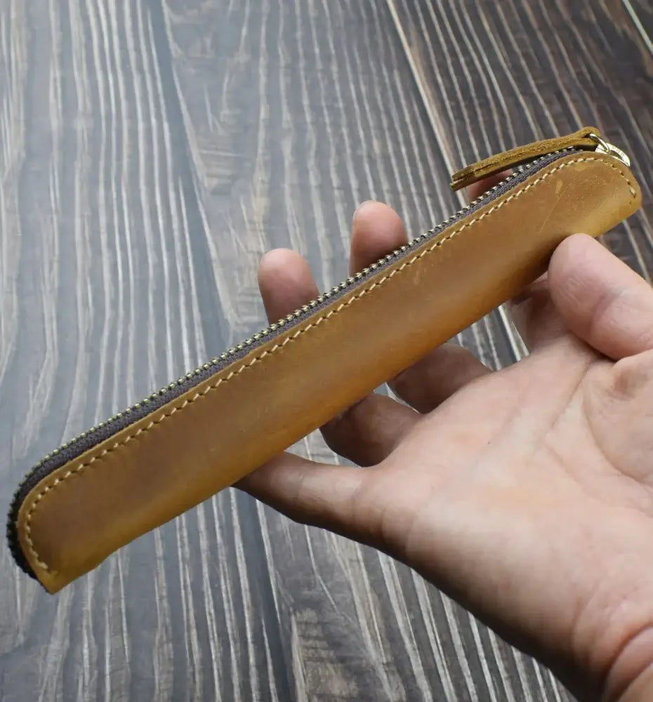 Piórnik na pióro zamykany na suwak – ręcznie wykonany ze skóry naturalnej