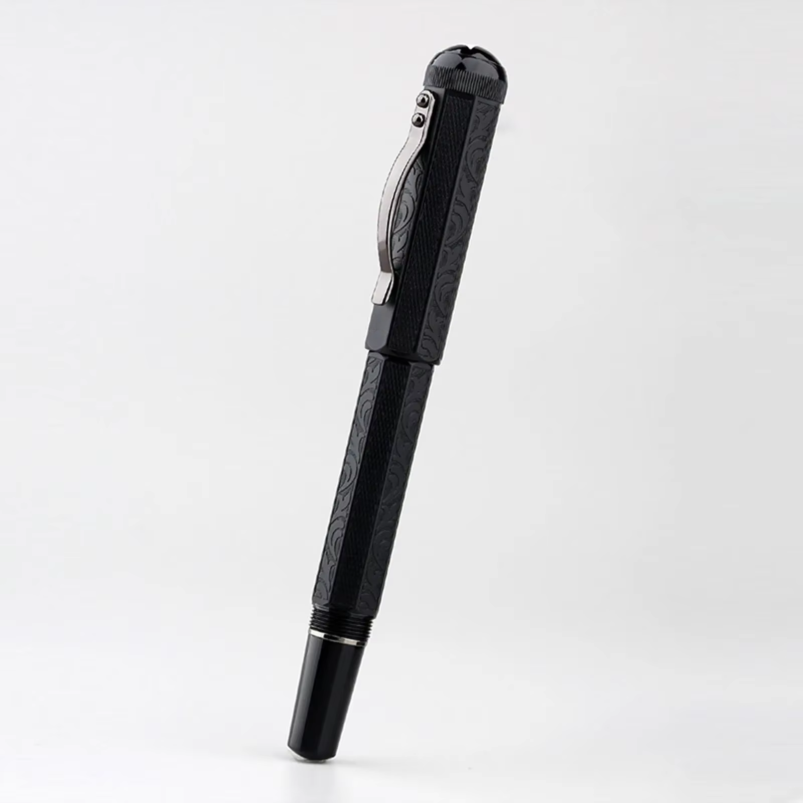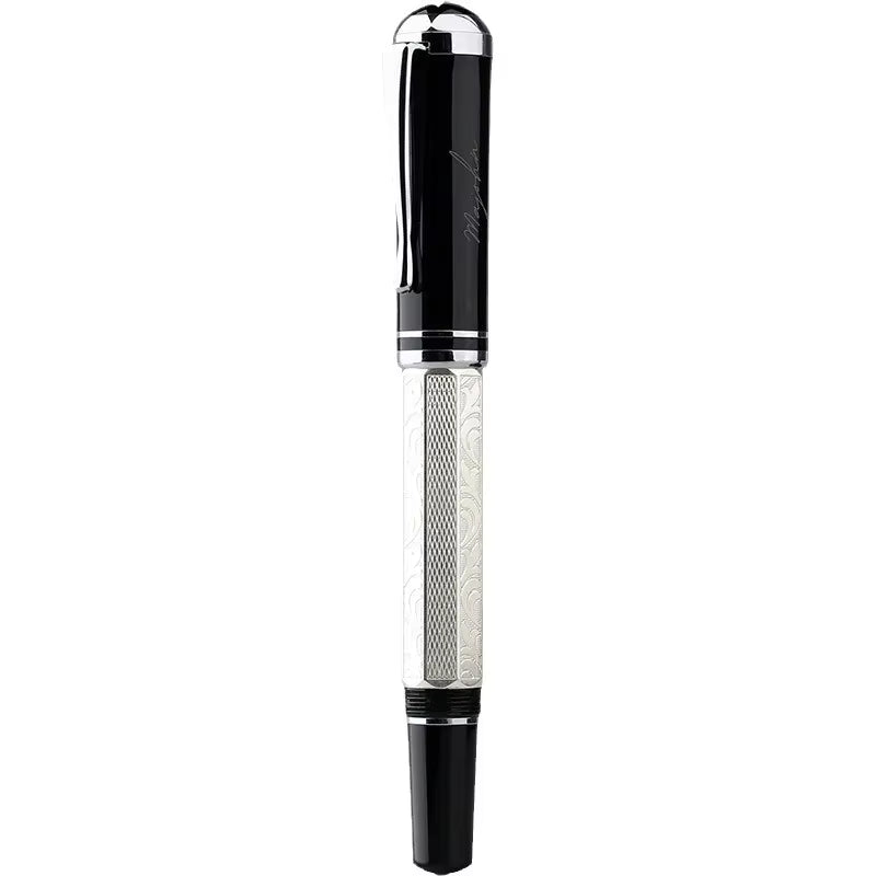 Czarno-srebrne wykończenie – czarna skuwka, srebrny korpus z dekoracyjnym wzorem. - 🖤 Czarna Dominanta – Kwadratowa Skuwka